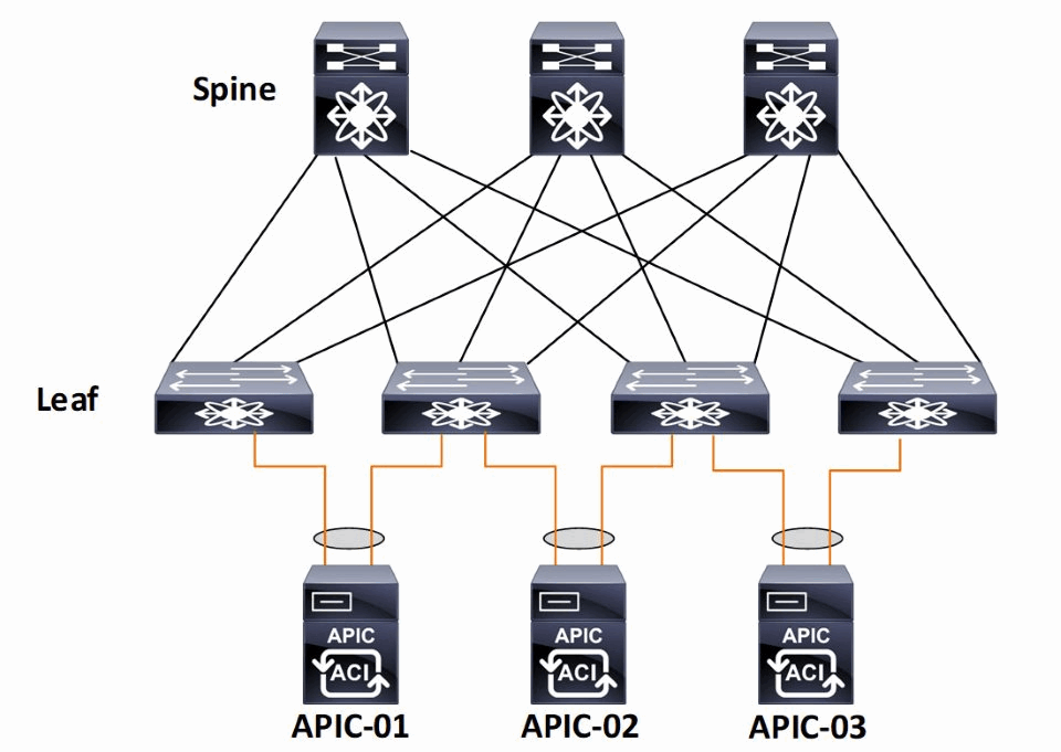 وجود حداقل سه APIC در هر Fabric باعث افزایش دسترسپذیری و ظرفیت پردازشی میشود. لینکهای بین APIC و سوئیچهای Leaf بهصورت خودکار پیکربندی میشوند و با پروتکل LLDP تجهیزات Spine و Leaf شناسایی و مدیریت میشوند.